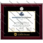 Custom  UIC diploma frame in most popular styles with unbeatable prices &high quality. University of Illinois at Chicago wooden diploma/degree certificate photo&picture frame,Use hot stamped diploma frames with the school’s name printed on them, pine solid wood outer frame, quality assurance diploma in frame.